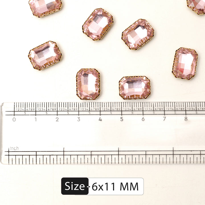 10 Pieces, Light Peach Color Sew on Glass Crystal Stone