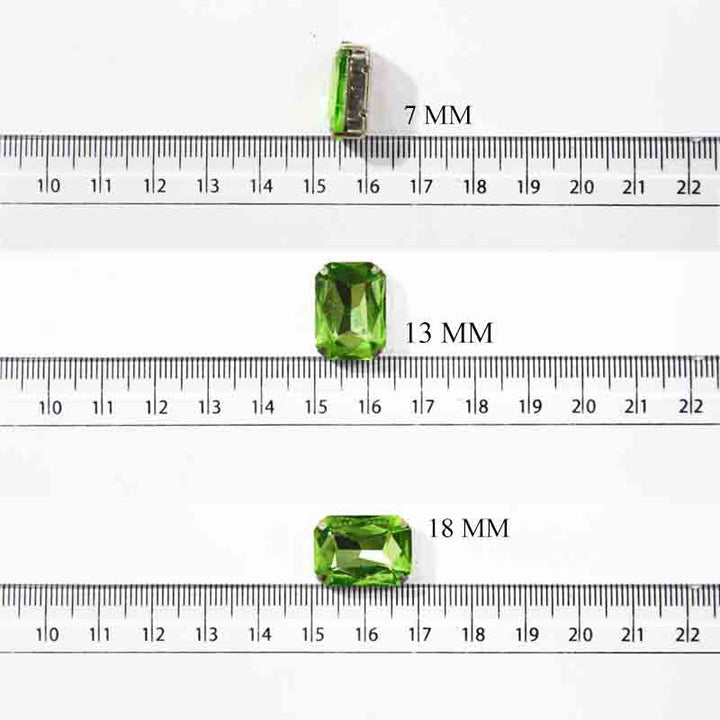 • Product Details: - These are Sew able Crystals, which has a smooth top and Multi facet inside Machine cutting. The backing of the crystal is done by silver foil. So, that crystal can have the best shine. The Holder's surface is flat and it has four holes in it for easy stitching or embroidery.