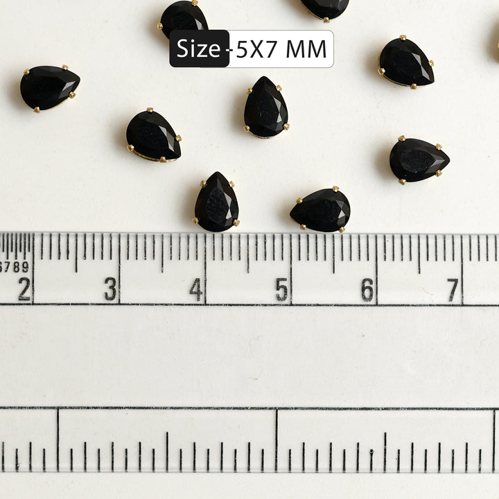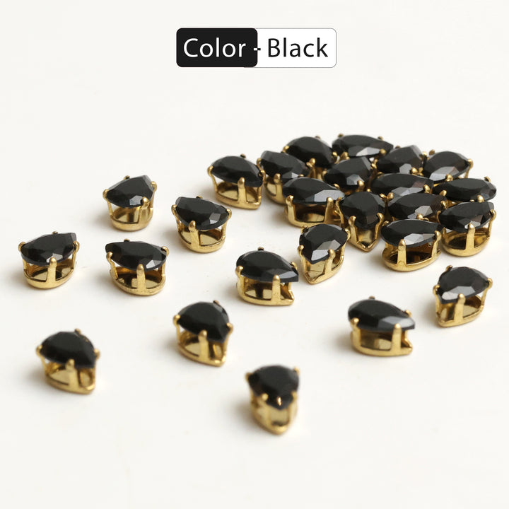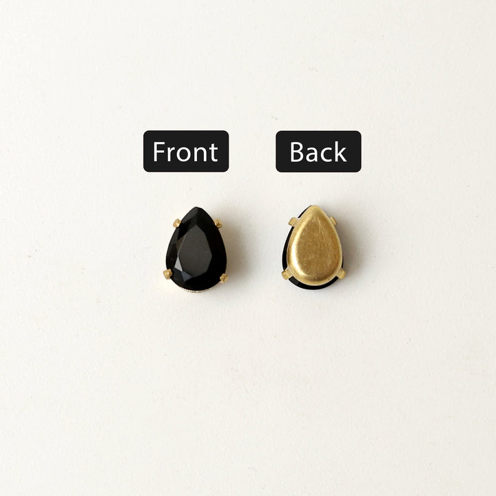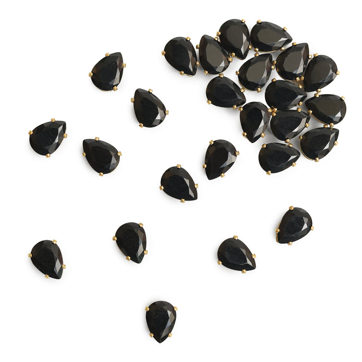 Sew On Black Tear Drop Rhinestones In Crown Prong Claw Setting 25 Pieces