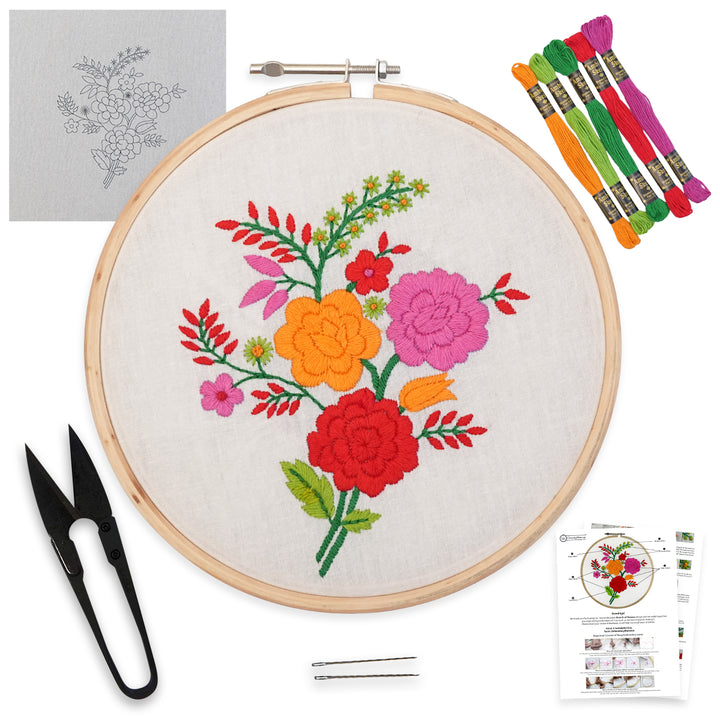 Embroidery Kit Branch of Flowers Design Digital Printed & Written Instructions All Material Included
