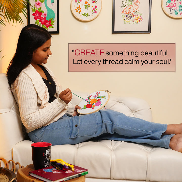 • Style:- Embroidery Kit Branch of Flowers Design Digital Printed & Written Instructions | All Material Included. (SKU ID:-EMBEK09118A)