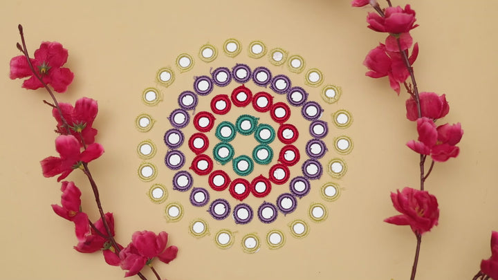 Product Detail: The art silk thread is hand woven on the acrylic ring and a double-hole silver color shiny sequin is sewn at the back of the ring. The thread is Azo free, i.e. it does not bleed any color. The thread does not loose and remains the same even after multiple washes.