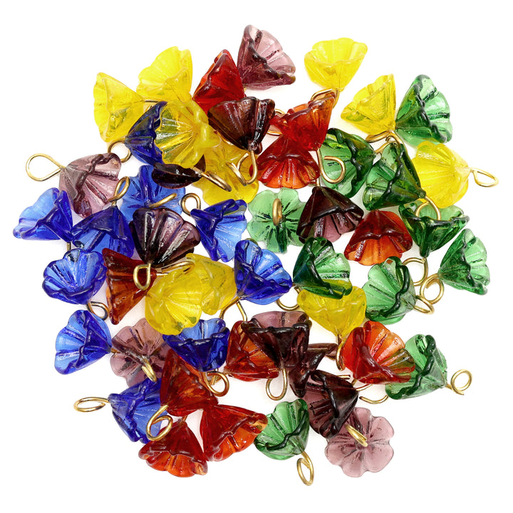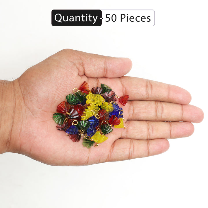 Flower Crystal Charms For DIY Jewellery Making, 5 Color Combo, 50 Pieces