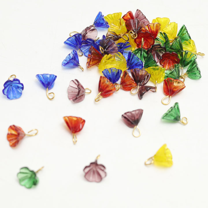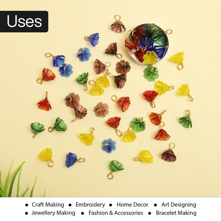 * Product Details: We have made these beautiful flower shape charms pendants from Lamp work Crystals. The dangling charms are non-fading and have high durability. You can use them in making different styles of DIY Jewellery like Earrings, Bracelets & Necklaces."