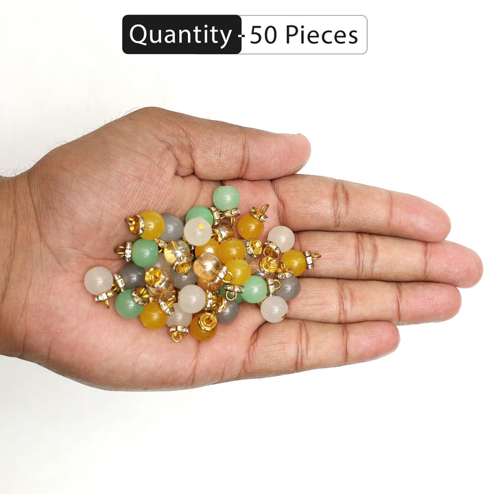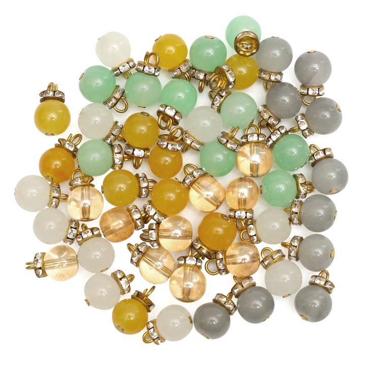 Bead Dangle Charms with Rhinestones Ring For Jewellery Making, 5 Color Combo, 50 Pieces