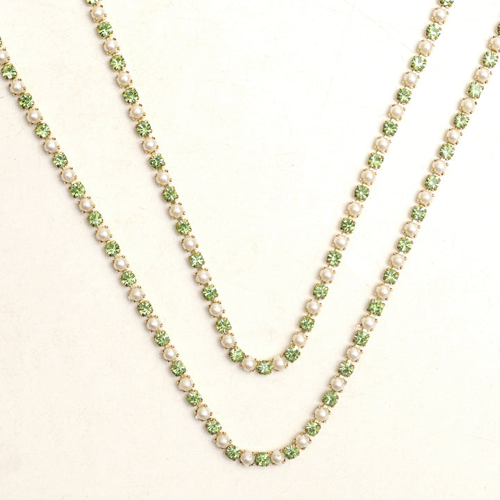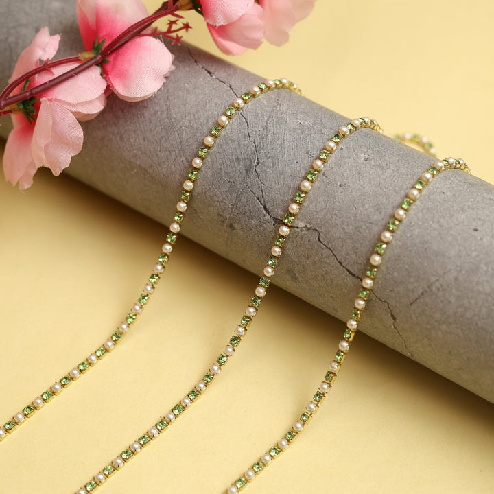 EMB1165 (Cream Pearl & Paradise Green Crystal Cup Chain)