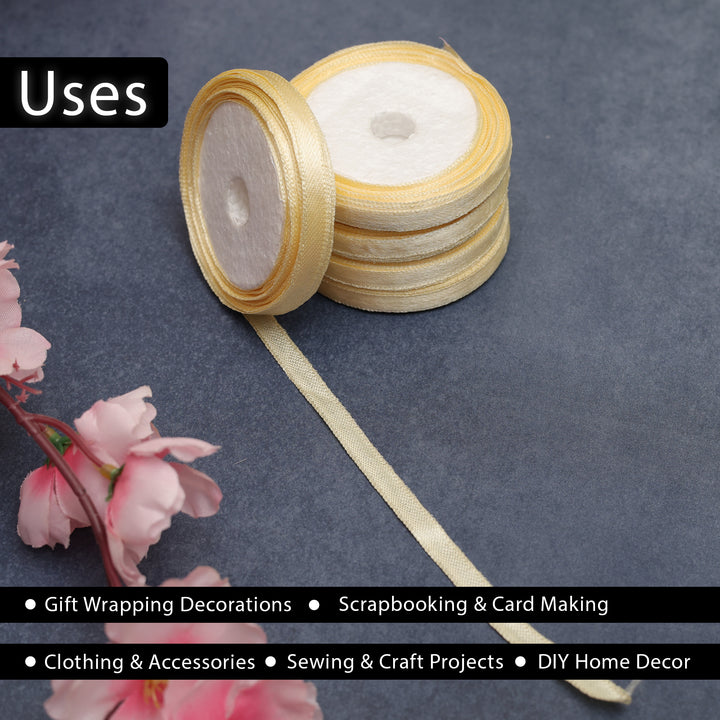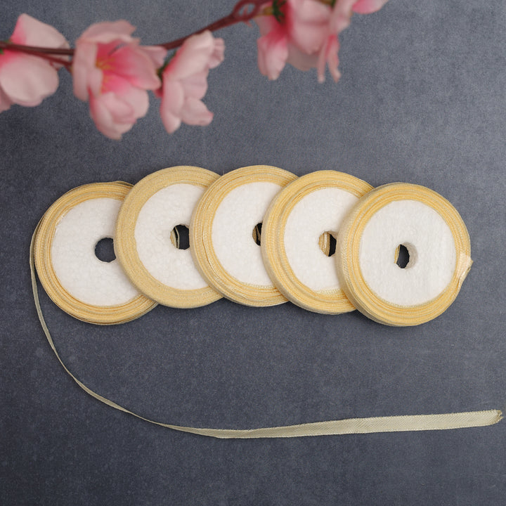 Creamy Yellow Color Satin Ribbon - 5 Roll