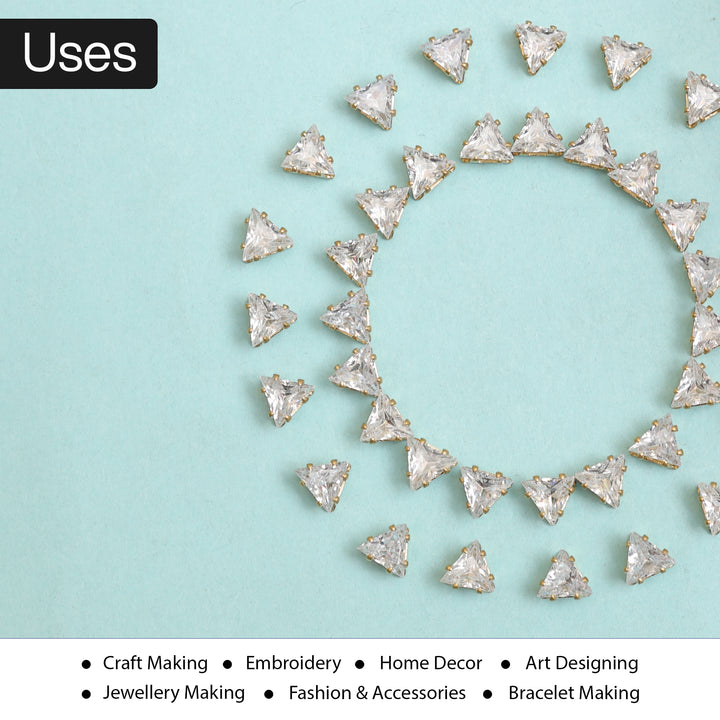 • Product Details: These are clear rainbow crystals without foiling that are set on golden prong setting. Crown prong setting are high-rise as compared to other setting holdings. So, if you sew them on a fabric then you can expect a 2D effect and a cord of 1MM can easily pass through the stone & prong setting to make jewelry items.