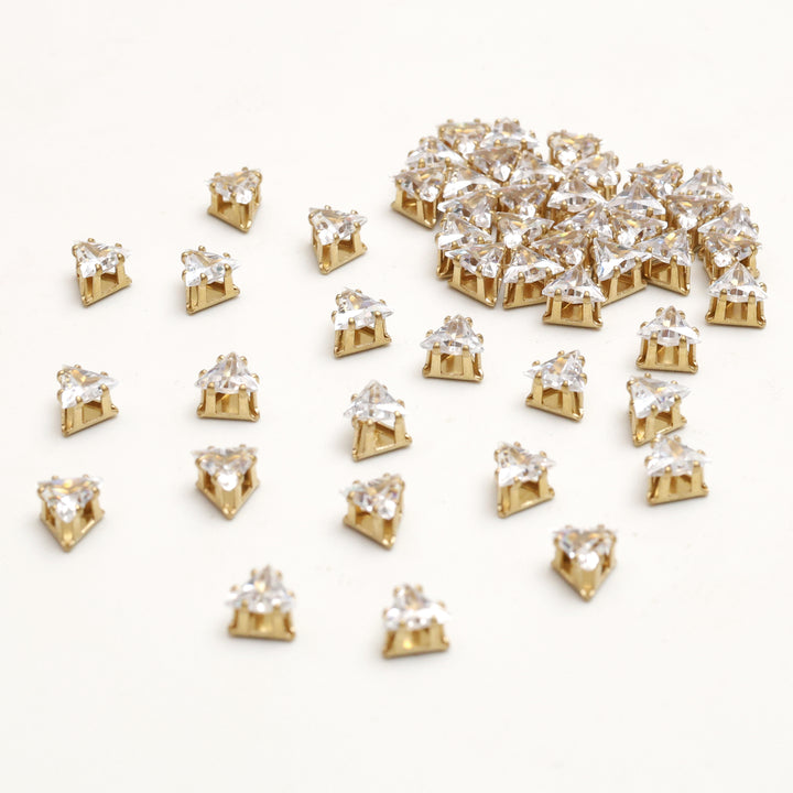 Triangle Shape Silver Rainbow Rhinestones in Crown Prong Setting, 50 Pieces