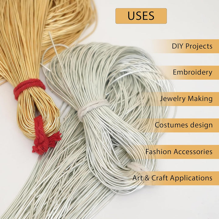 • Product Details: - These smooth metallic wires are round and are used for doing Aari, Zardosi, Tambour & Luneville Hand Embroidery & also in making jewelry. In india, these are also called Dapka or Dabka.