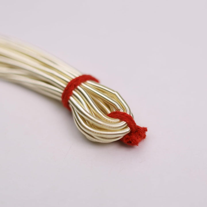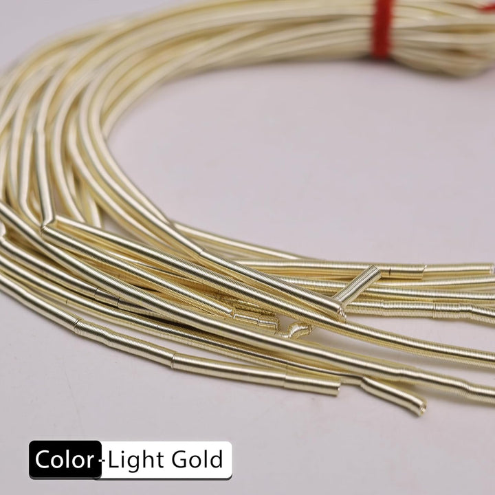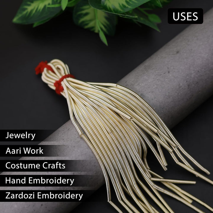 • Product Details:- it is a fine coil wire used by Apparel & Accessory designers. In Apparel, it can be used to do different kind of embroidery using Zardosi technique and In Accessory, It is used to conceal beading wire next to crimps and clasps. Proponents maintain that French wire gives jewelry an elegant, professionally finished look while also protecting and strengthening the ends of the beadwork.