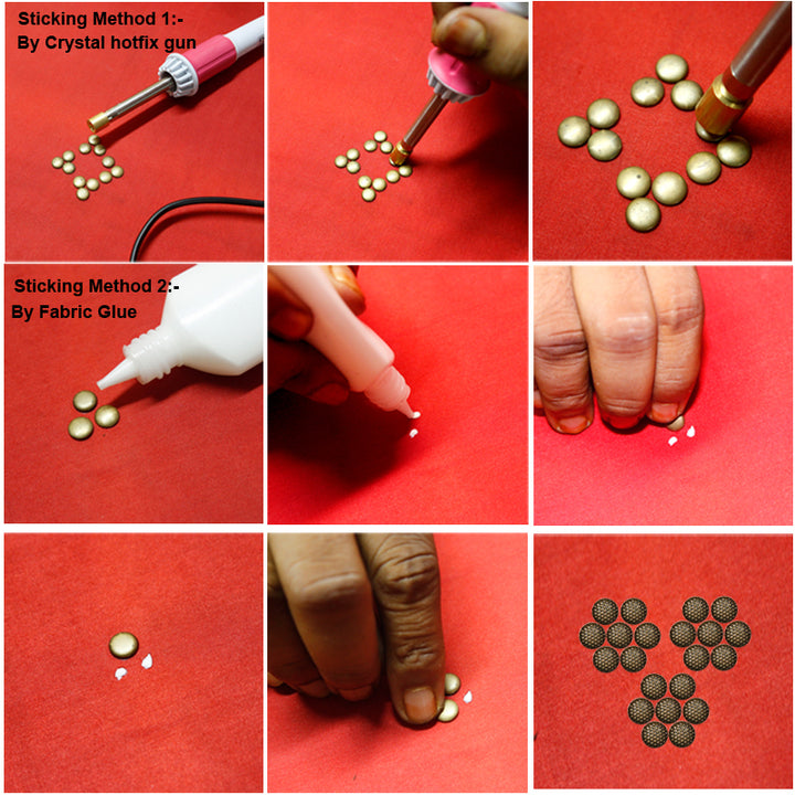 • Product Details:-  These Studs are made from brass metal and they are very easy to use. you can stick them on fabric by Fabric Glue or by Crystal Hot-Fix Gun.