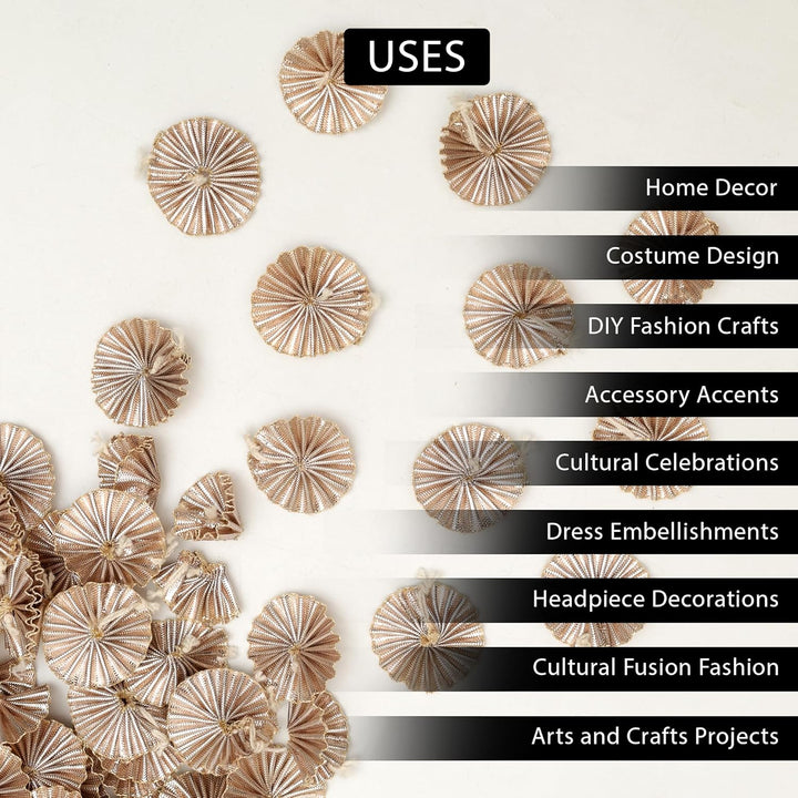 Gota Flower Ethnic Appliques Patches For Dresses, Headpieces, Decoration & Accessories (Rose Gold Color,100 Pieces)