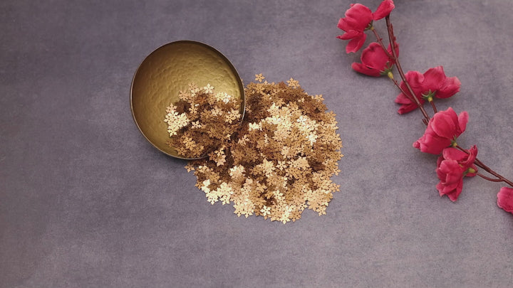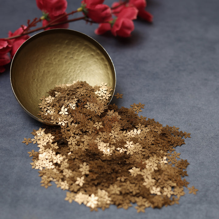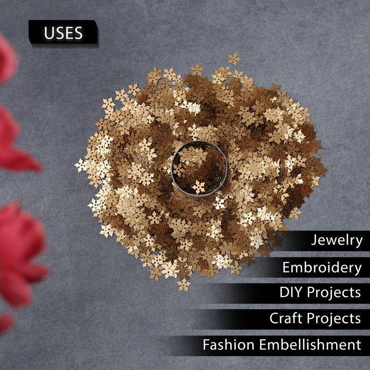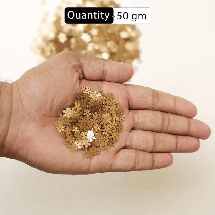 50 Grams, 8MM Flower Sequins in Antique Gold Color