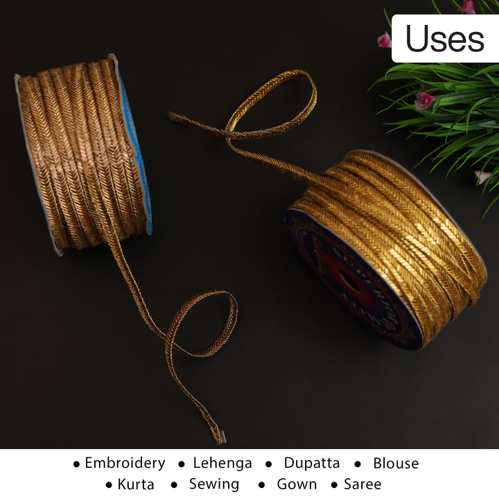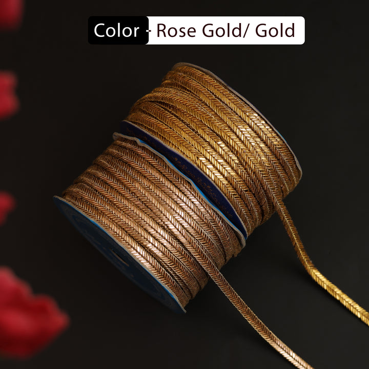 Zari Border Lace Trims Combo In Rose Gold & Gold Colors For Sarees, Dupata & Blouses Length 34Mtr Width 6MM (2 Rolls)