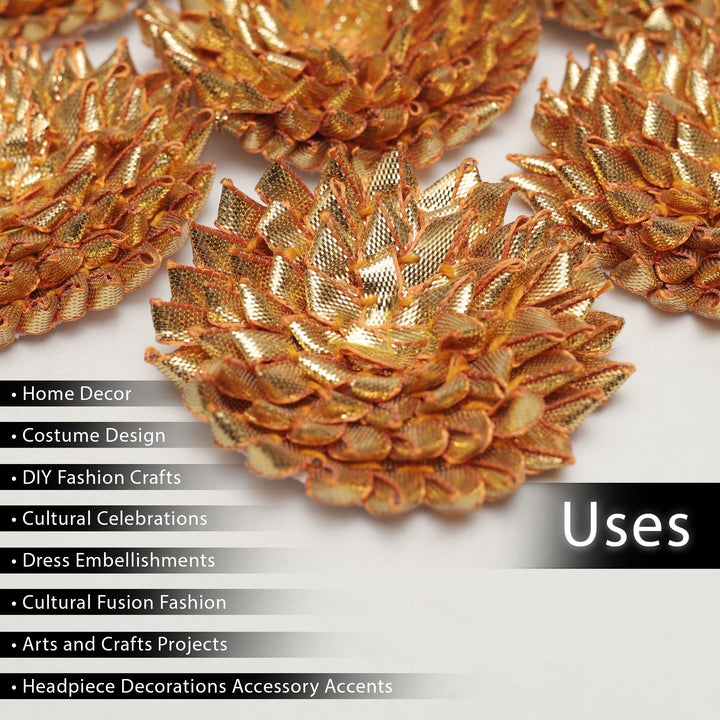 • Product Detail: These Gota Patti Flowers are beautiful hand sewn flowers that are available in 4 layer pattern. These alluring pieces are perfect for adornment of any design.