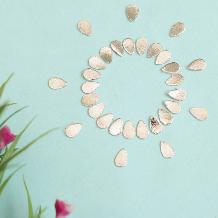 Teardrop Shape Pale Gold Color Rexine Gota Patti