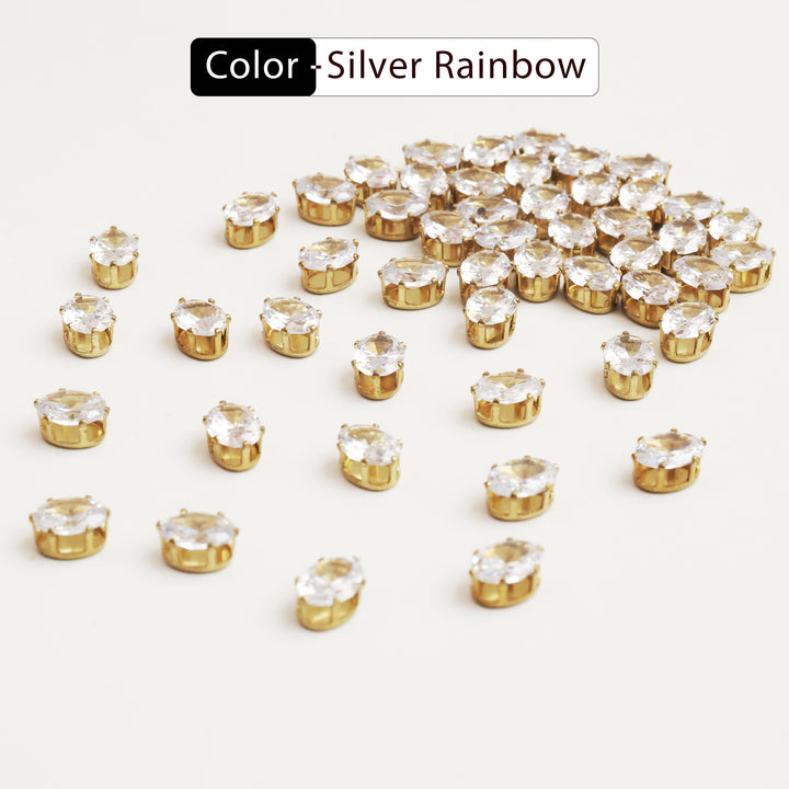 Oval Shape Silver Rainbow Rhinestones in Crown Prong Setting, 50 Pieces