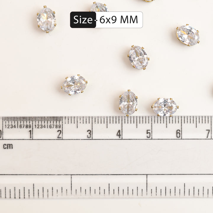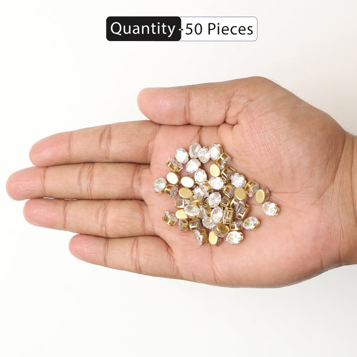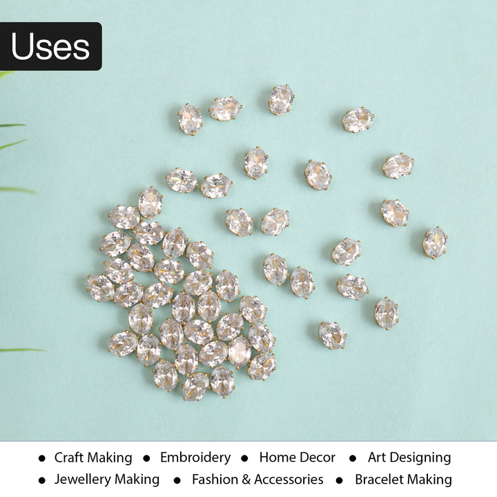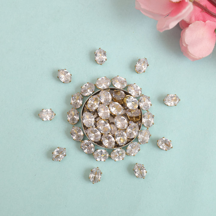 • Product Details: These are clear rainbow crystals without foiling that are set on golden prong setting. Crown prong setting are high-rise as compared to other setting holdings. So, if you sew them on a fabric then you can expect a 2D effect and a cord of 1MM can easily pass through the stone & prong setting to make jewelry item.