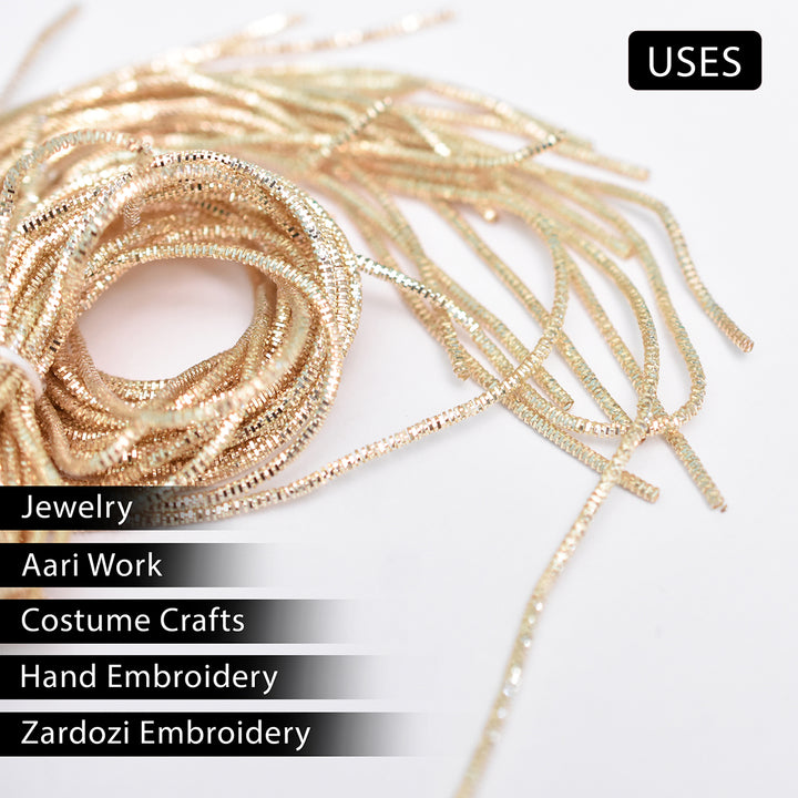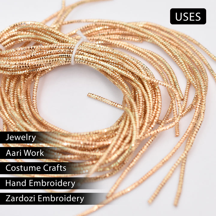Crinkle Bullion Wire For Goldwork, Tambour, Luneville, Zardosi & Aari Embroidery, 1MM, 10Gram (5 Meter Approx)