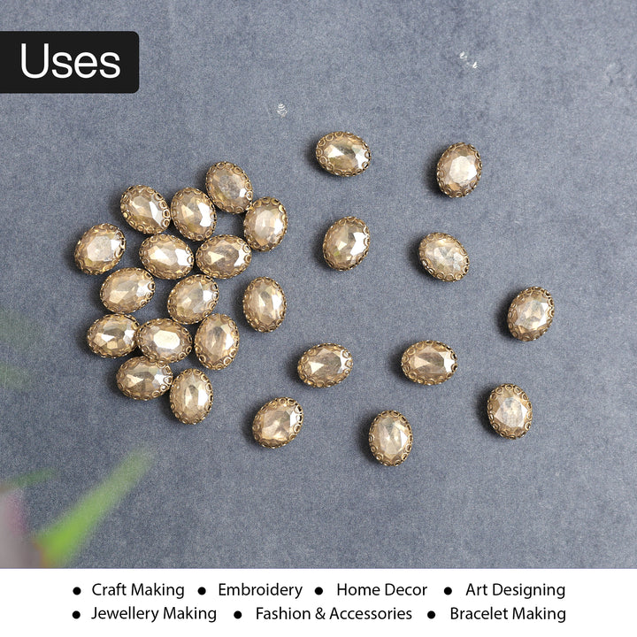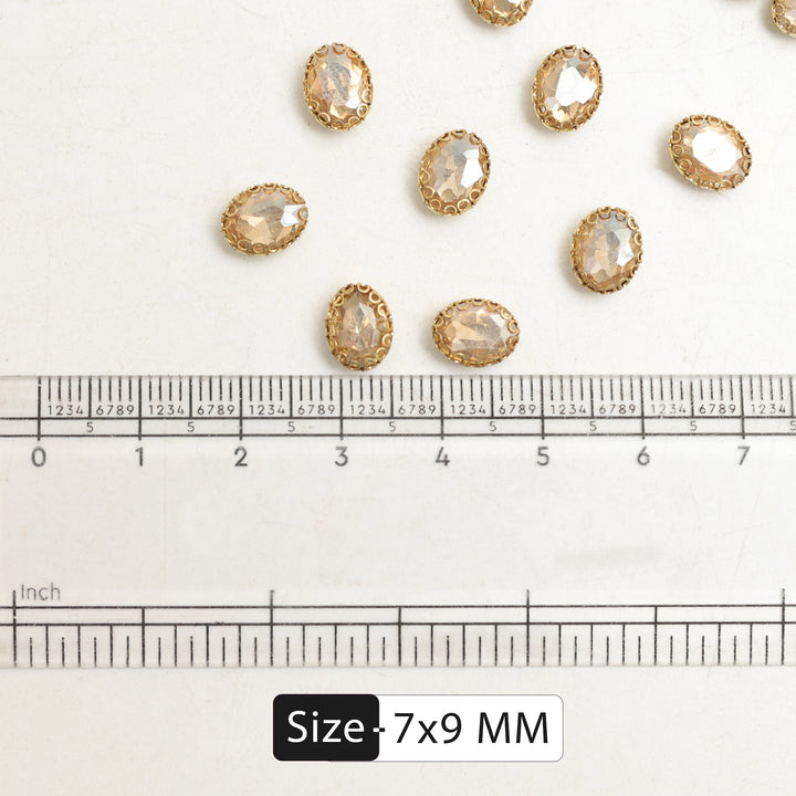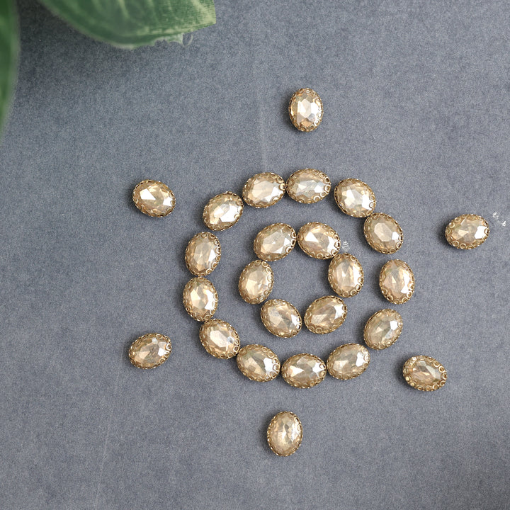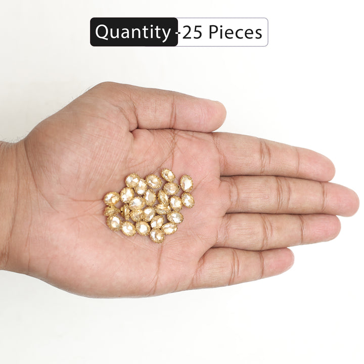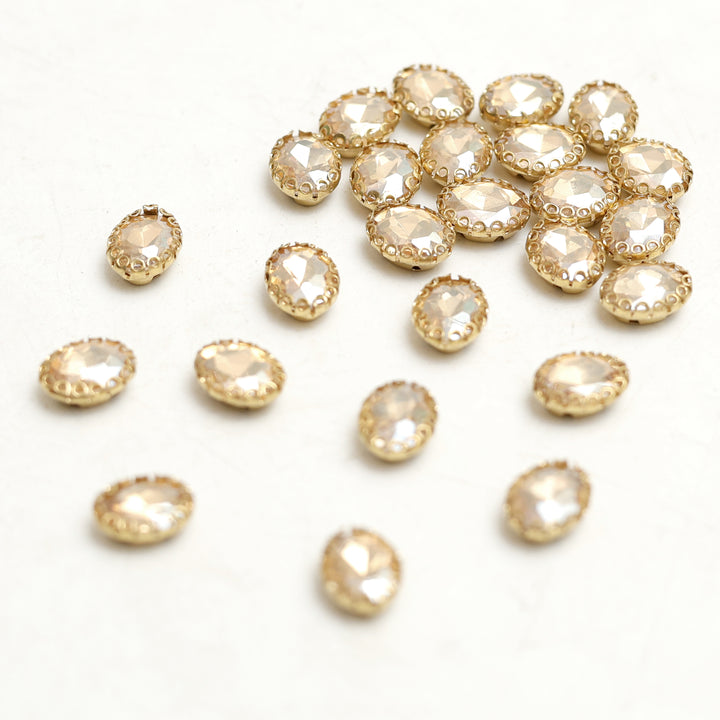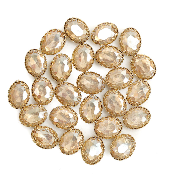 25 Pieces, Light Gold Color Sew on Glass Crystal Stone
