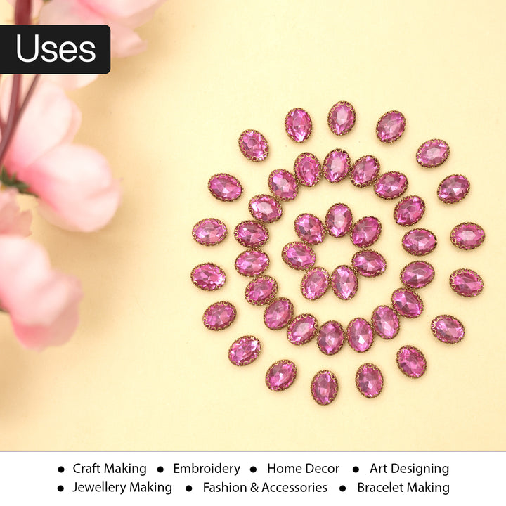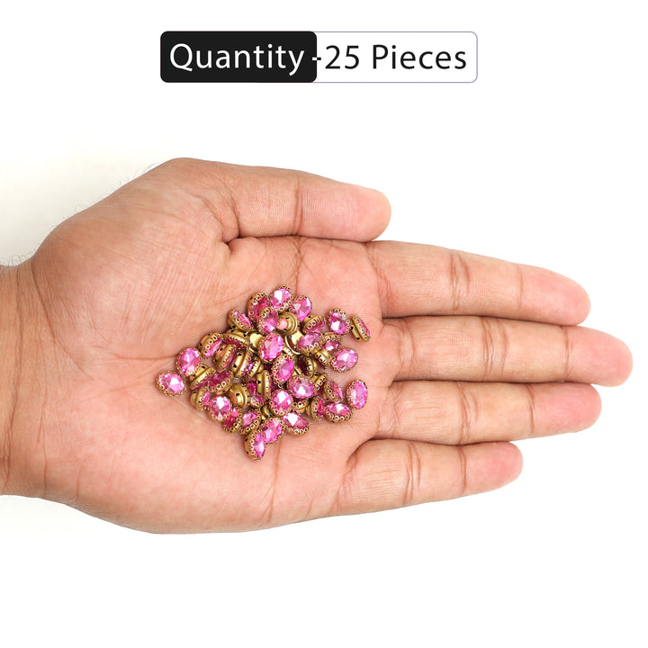 25 Pieces, Magenta Color Sew on Glass Crystal Stone
