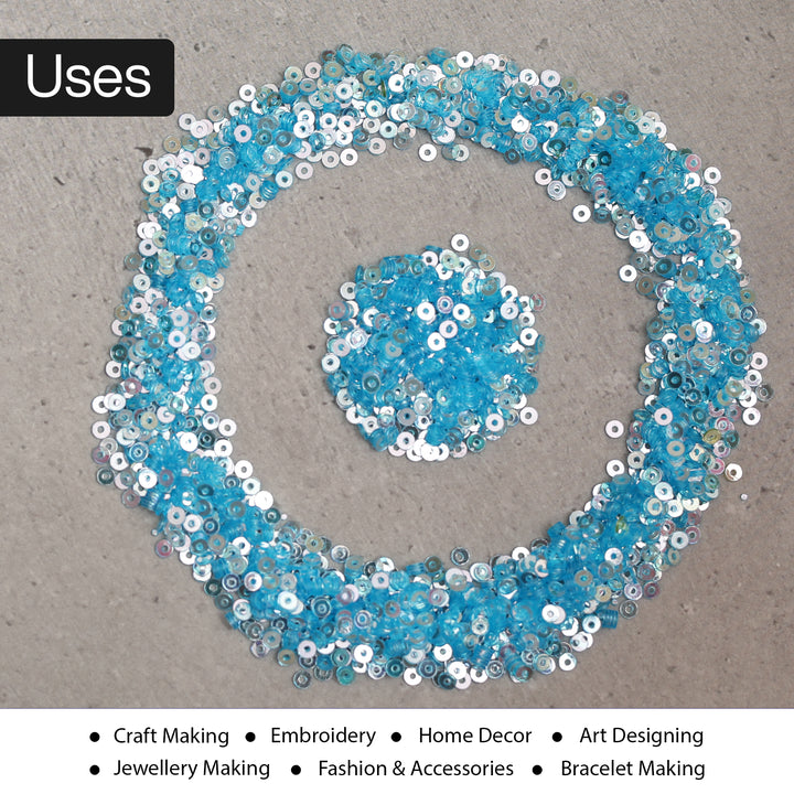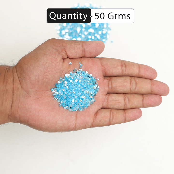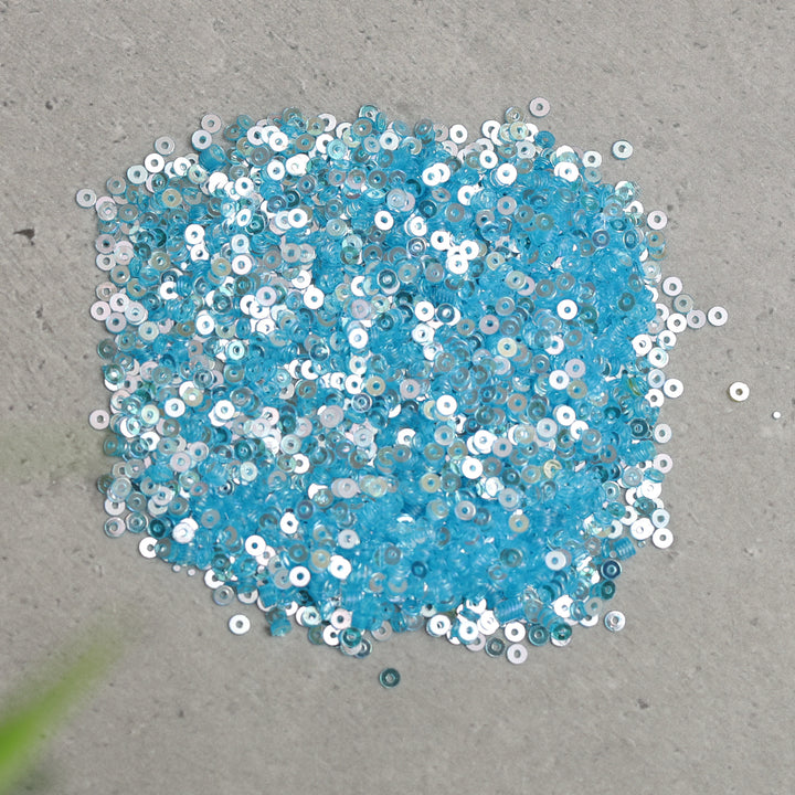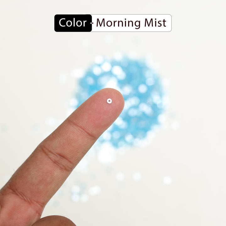 • Product Details:- The sequins base color is Morning Mist and it has a crystal transparent finish, which gives a luminous surface to the sequins.