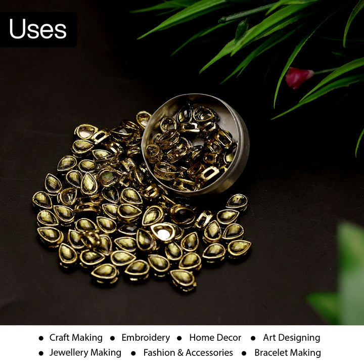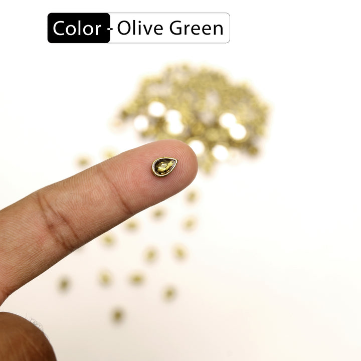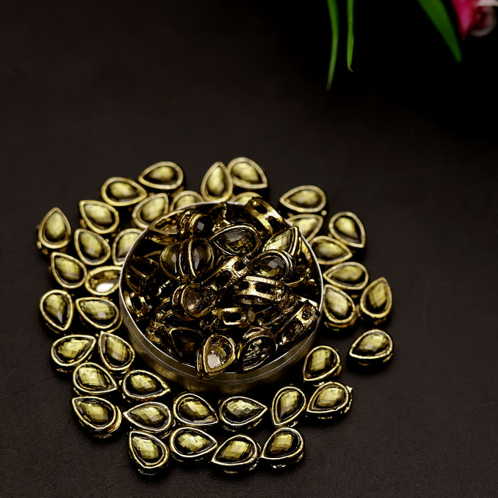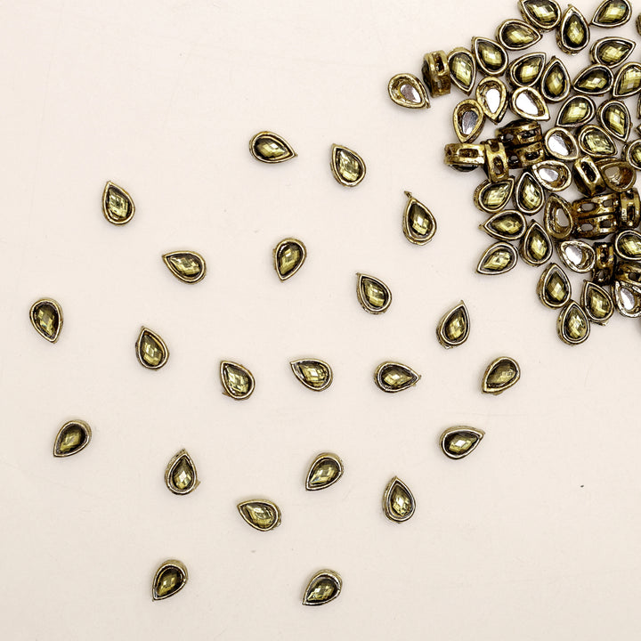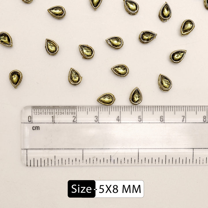 EMBKS5351 (5x8MM Olive Green Color Tear Drop Shape Kundan Stones)
