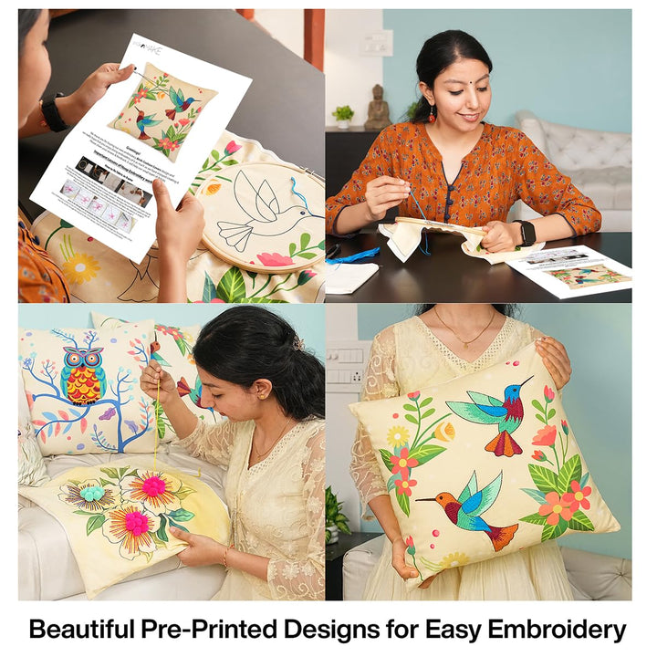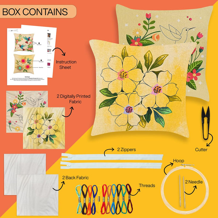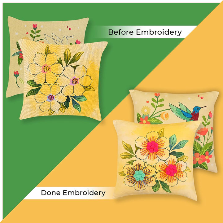 Pack of 2 DIY Cushion Cover Hand Embroidery Kit for Beginners & Adults – Botanical Harmony Set | 16"x16" Cross-Stitch Pillow Covers with Digitally Printed Designs | All Materials Inside