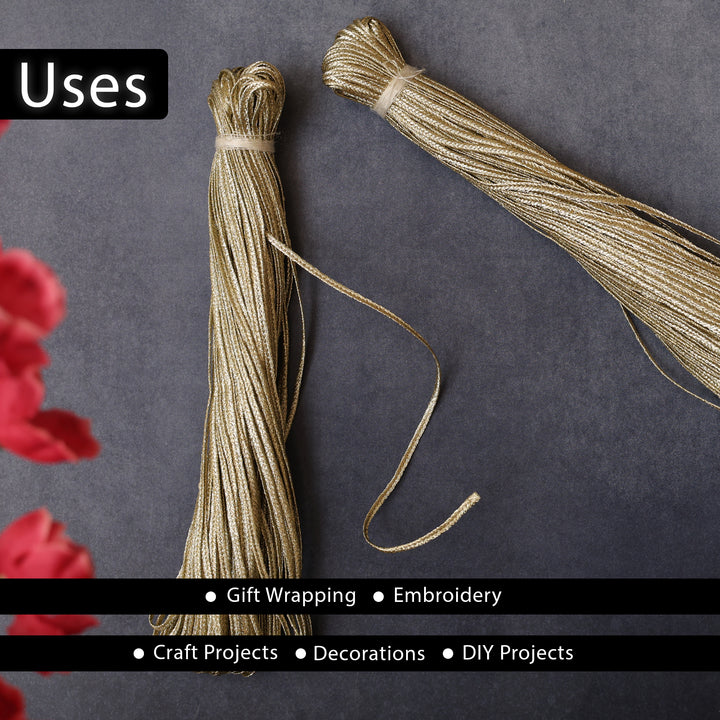 Product Details: This beautiful metallic braided cord is used for embroidery, gift wrapping, DIY projects, decorations and other craft projects. In India, it is known as Zari dori.