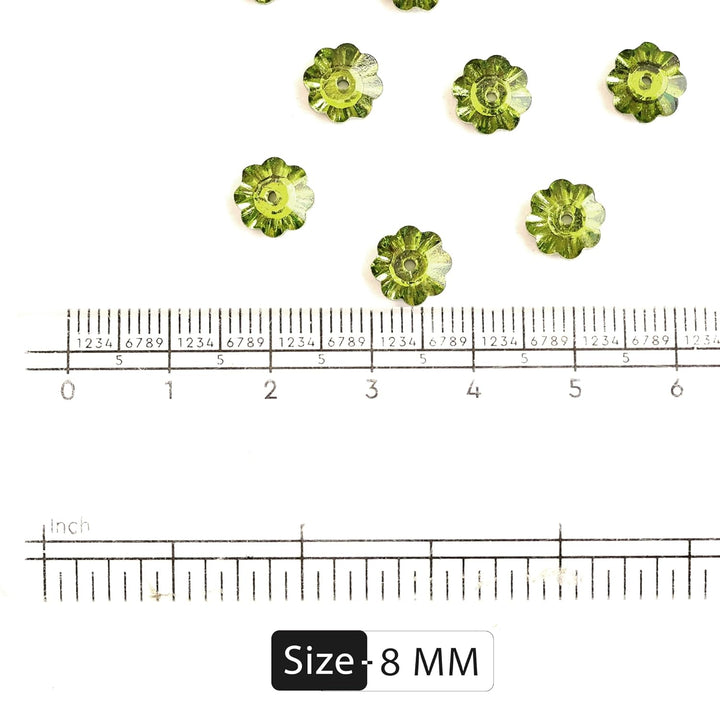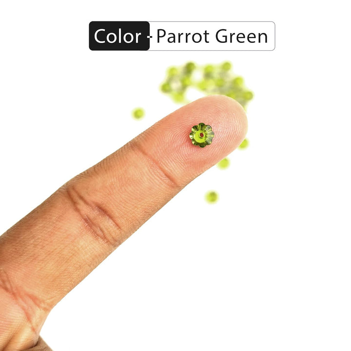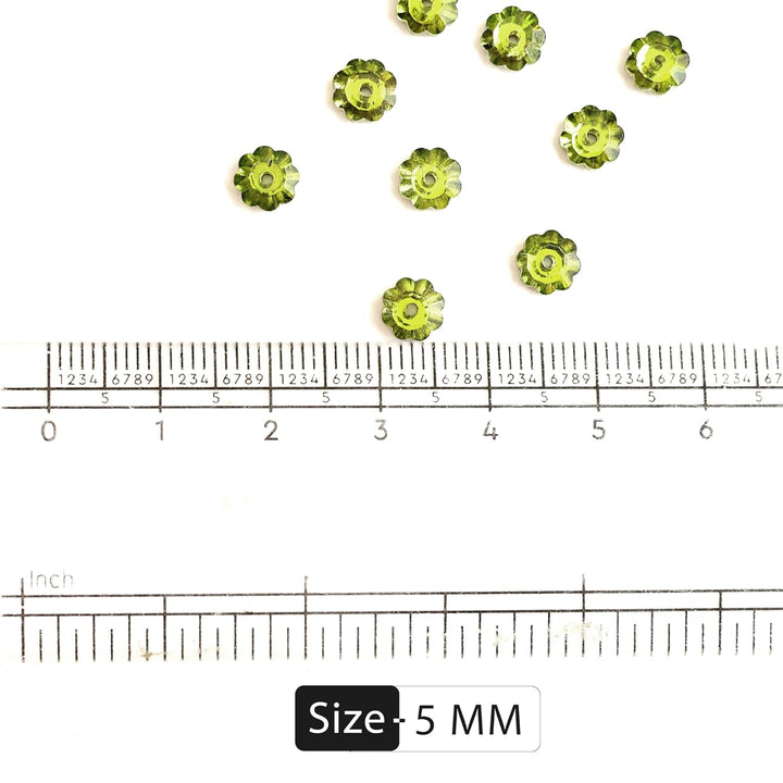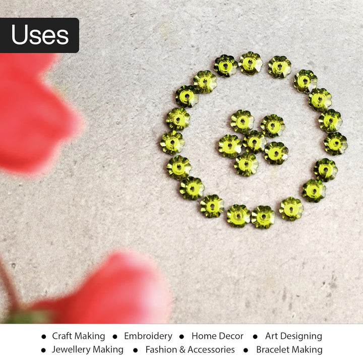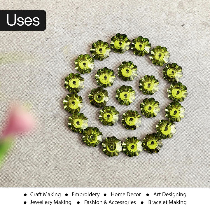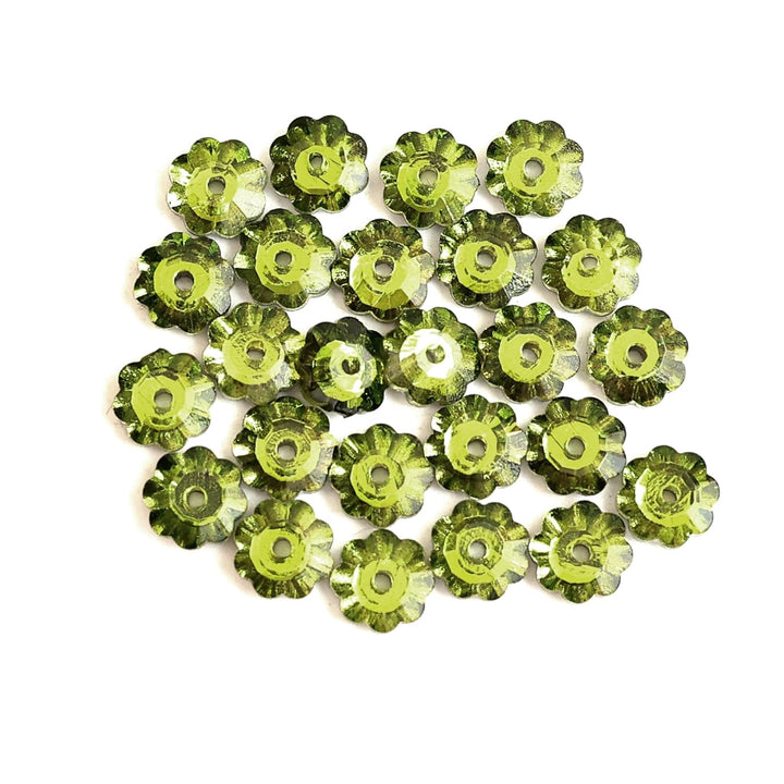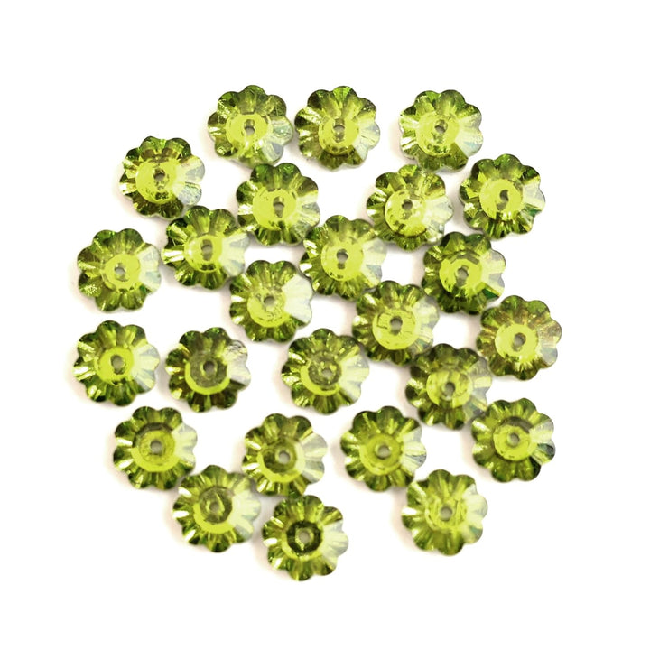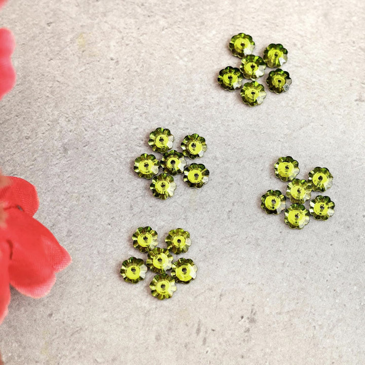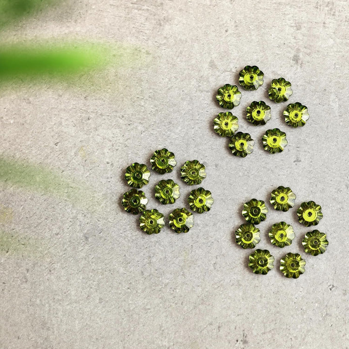 25 Pieces, Parrot Green Color Faceted Marguerite Lochrose Flower