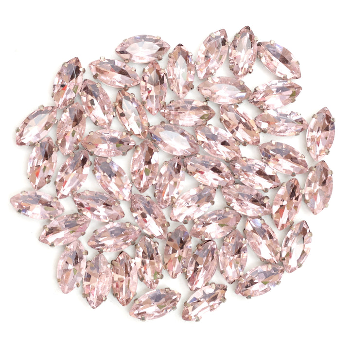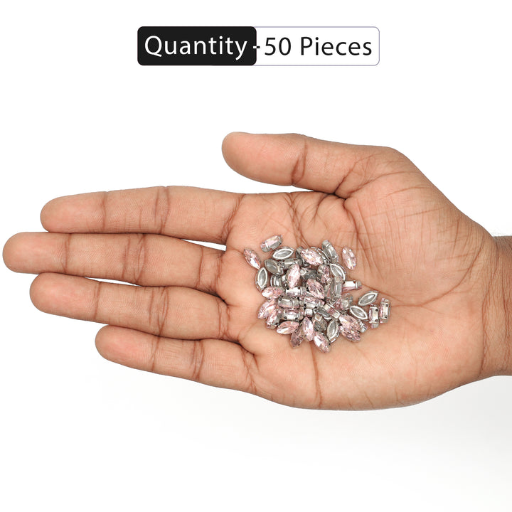 Sew On Pink Eye Boat Marquise Shape Rhinestones In Metal Base Claw Settings 50 Pieces
