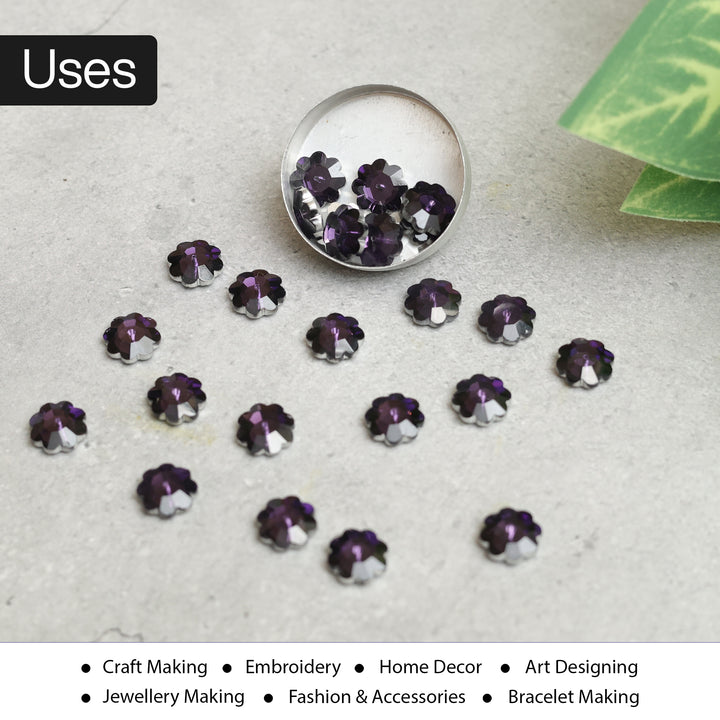 25 Pieces, Purple Plum Color Faceted Marguerite Lochrose Flower