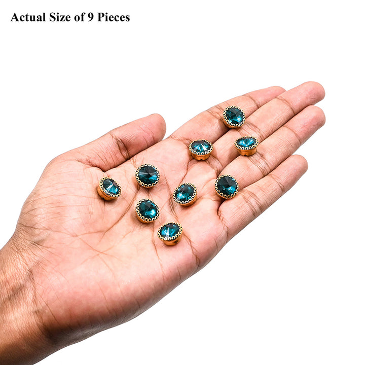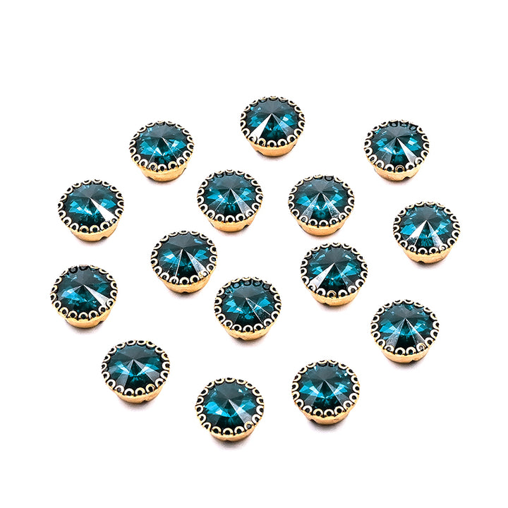 Sew On Ruby Blue Round Rivoli Rhinestones in Flower Claw Setting 15 Pcs