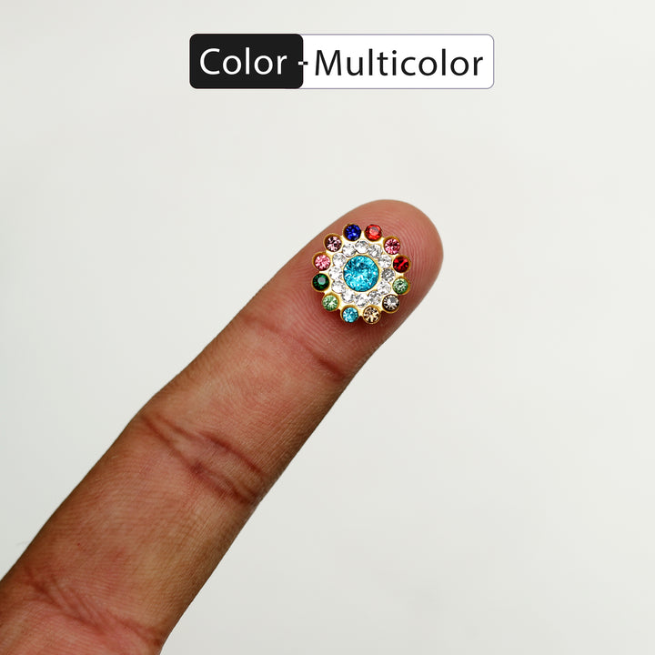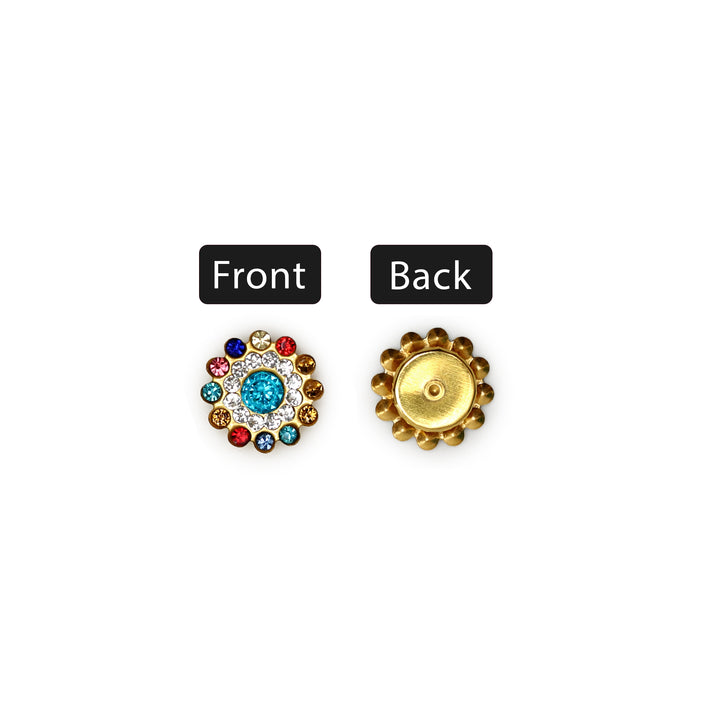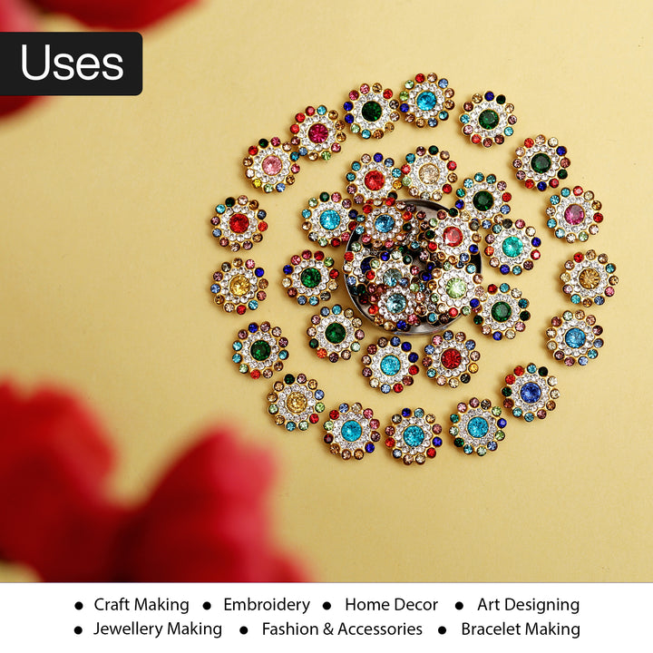 • Multicolor flower Rhinestone are made of a metal base with rhinestones glued on in a floral design.