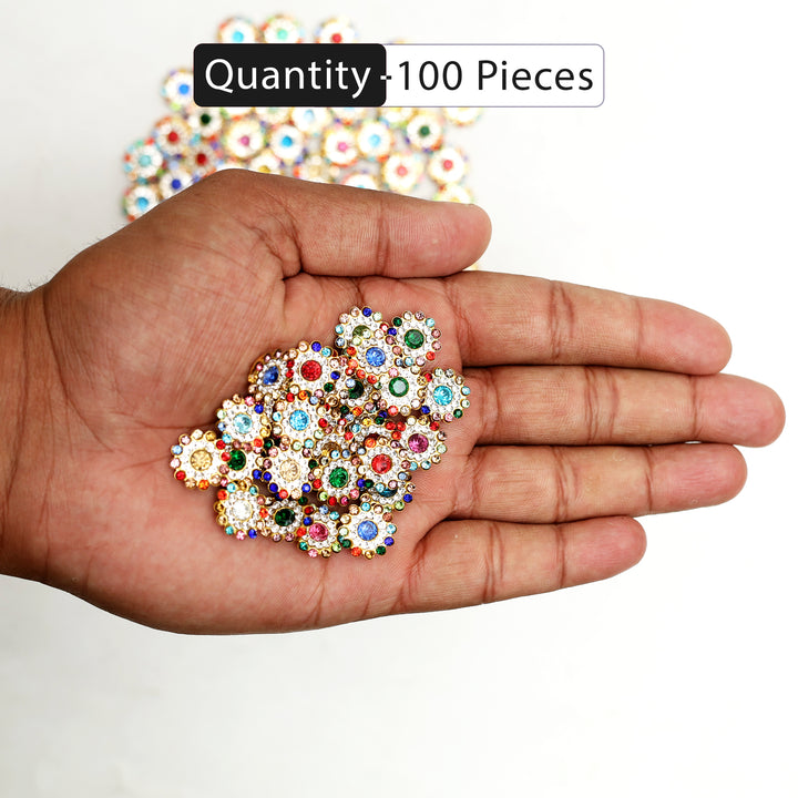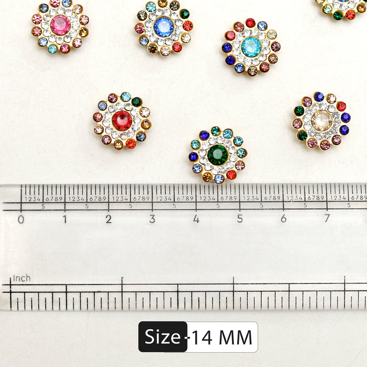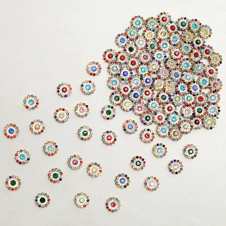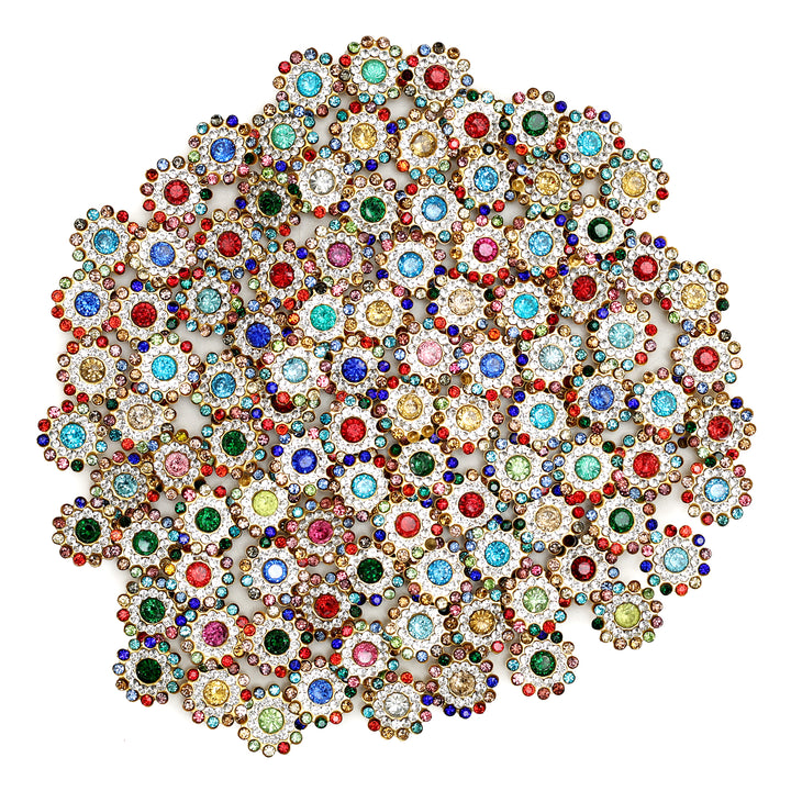 14 MM (100 Piece) Multicolor Crystal Flower Rhinestones Sew-On/Glue-On Embellishments for Garments, Jewelry, Crafts, and More