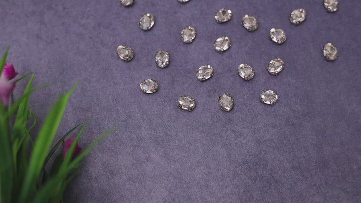 Sew on Oval Shape Crystal Rhinestones with D Shape Claws, 48 Pieces, 6*8MM