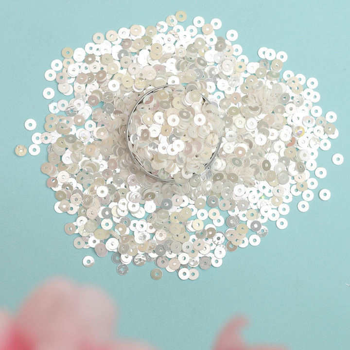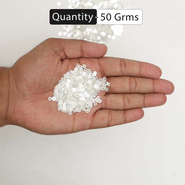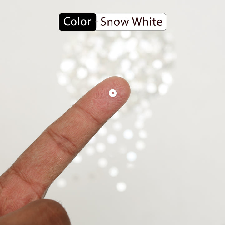 2.5MM, 3MM & 4MM,Snow White Colour Crystal Finish Sequins -EMB331