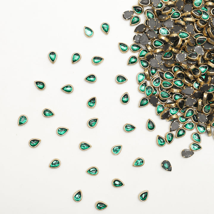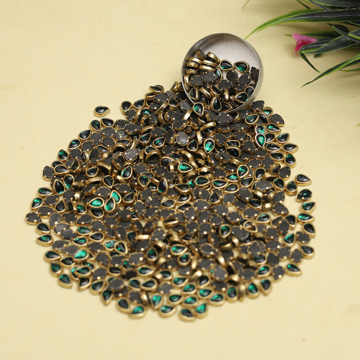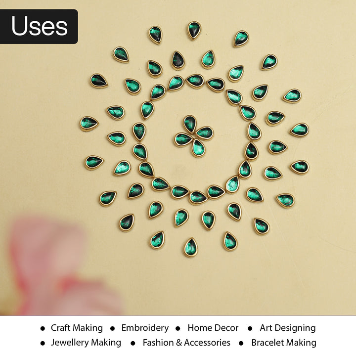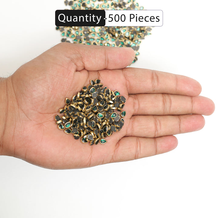 Kundan Stones in Tear Drop Shape Emerlad Green Colour for DIY Jewellery & Embroidery Embellishment, 5X7 MM, 500 Pieces