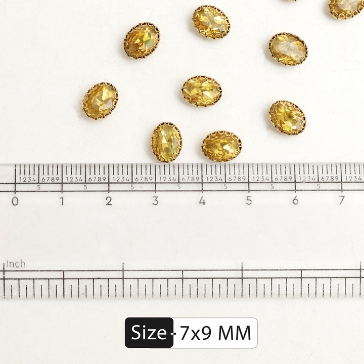 25 Pieces, Yellow Color Sew on Glass Crystal Stone